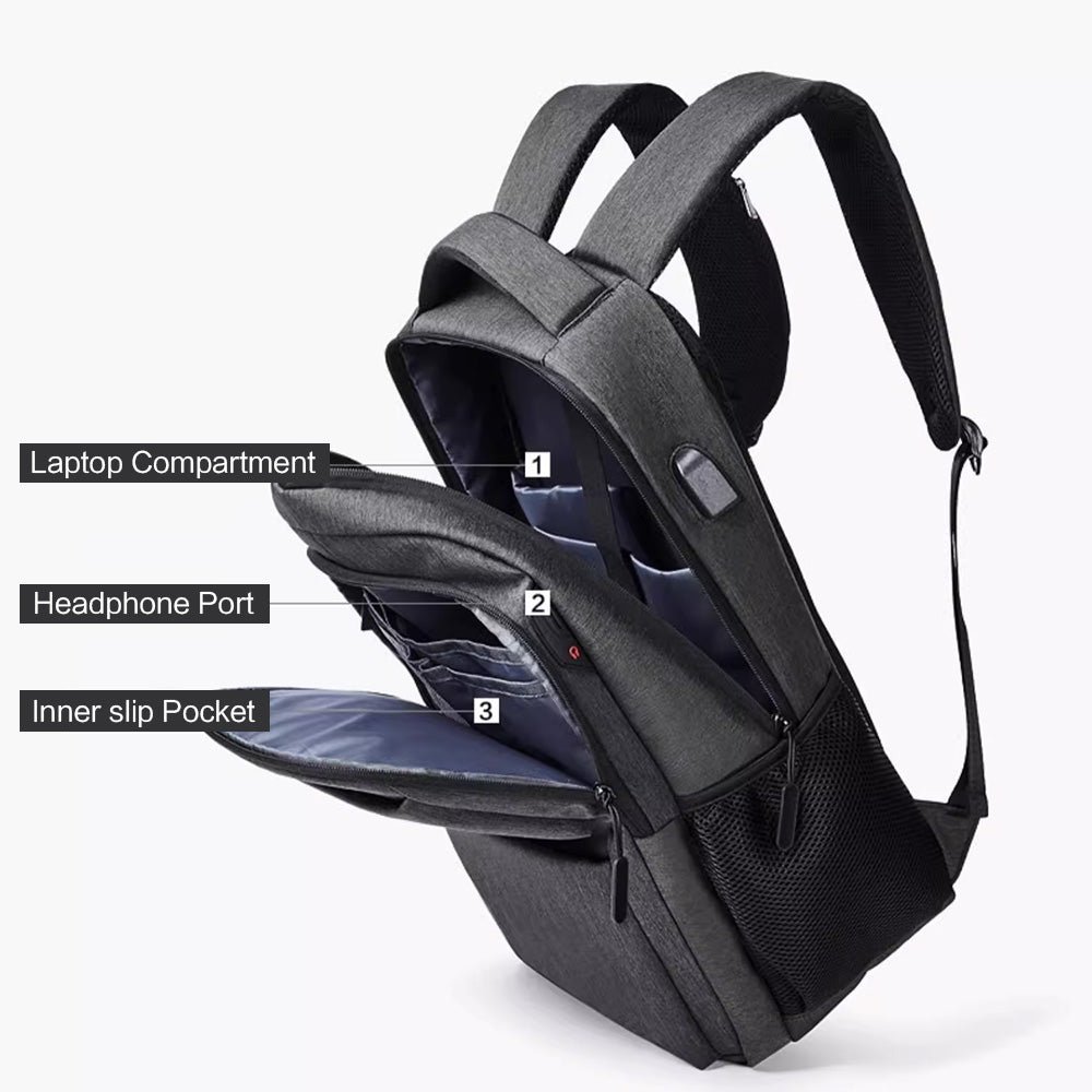 接口设计:外部内置 USB 充电器,内部内置充电线,这款 USB 背包让您在行走时也能轻松为手机充电。耳机插孔:让您随时随地解放双手,聆听喜爱的音乐。