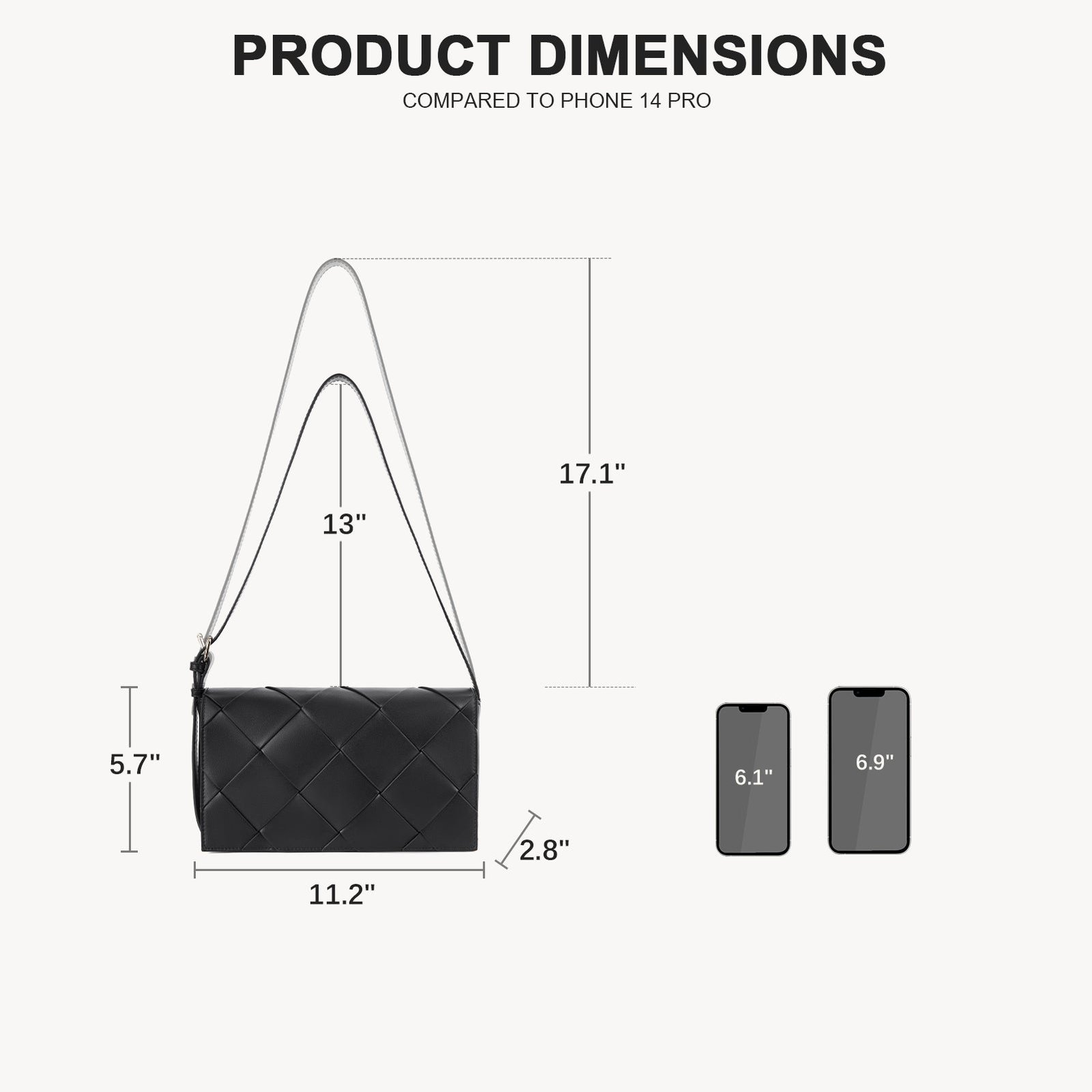 - Ideal Size Purse:Womens purse measures 11.7 inches (L)x 2.8 inches (W)x 5.7 inches (H). and the long strap can be adjusted from 13 inches to 17.1 inches. You can adjust the purse as a shoulder bag or crossbody purse according to different scenes and wearing style. When traveling. you can use your wallet as a crossbody bag. free your hands. and carry it on daily trips without looking bulky