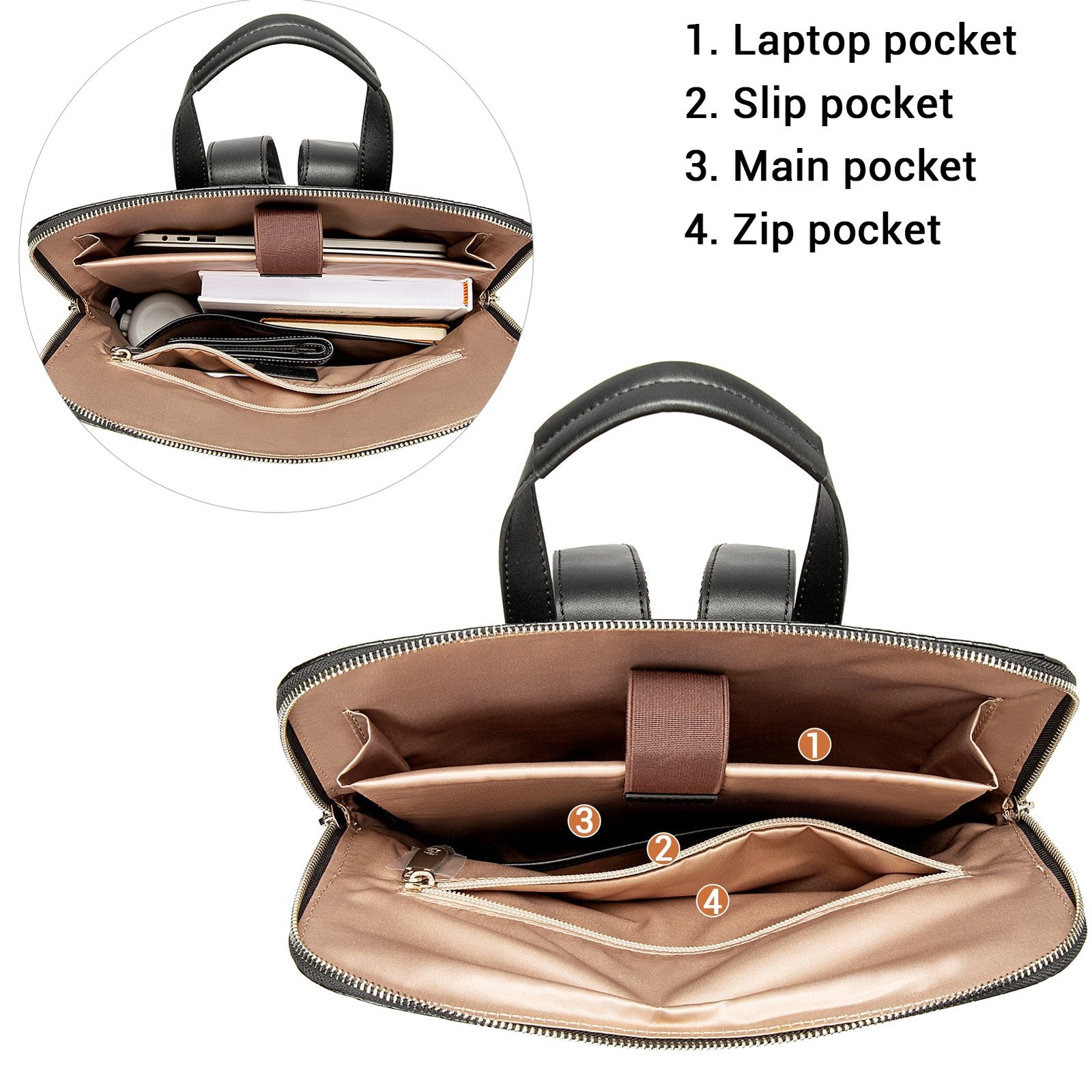 - ¡¾Size & Structure¡¿(L)11.42”x (W)5.71”x (H)14.56”; Net weight:1.82 lb. 1 main two-way zipper storage compartment with 1 back wall zipped pocket. 1 internal slip pocket. external set 1 front two-way zip storage room. and 1 small zip pocket for your smaller objects. so you can easy to access and store stuff.