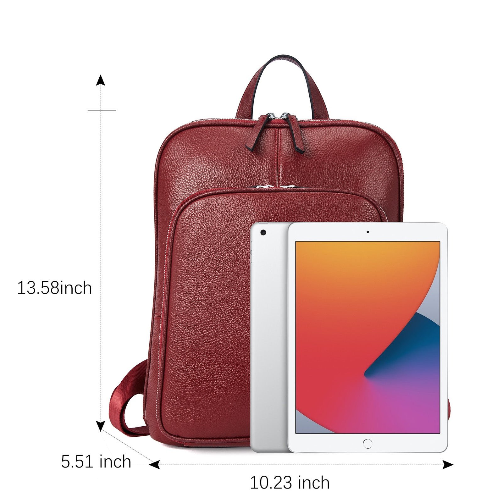 • Size — 10.23L x 13.58H x 5.51W inches (26L x 34.5H x 14W cm); Net weight: 2.05 lb (0.93 kg); Top handle height: 2.76 inches (7 cm); Shoulder straps can be adjusted to your expected size; Package: Branded non-woven pocket for dust-proof.