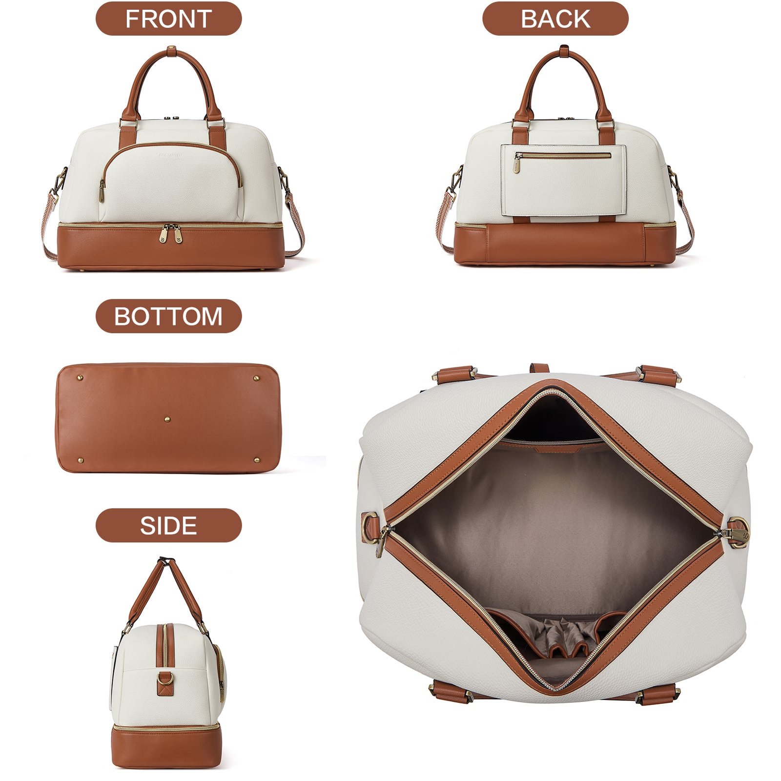 - ¡¾High Quality Matrial¡¿This weekender bag is made of handmade by professional craftsman with high quality water-resistant pu leather. soft khaki fabric lining.and vintage bronze hardware.Well-knit stitch make it bear heavier weight stuff without tearing.Classic color combination make it stylish.also easy to match any outfits and occasion.